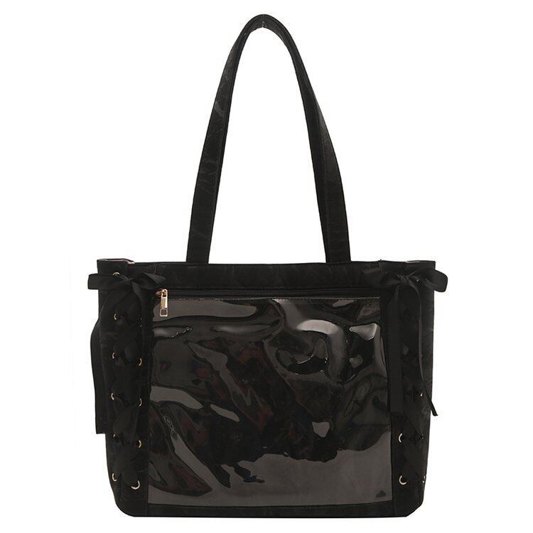 可愛い痛バッグ 学生風 リボン編み上げ PVC 痛ショルダーバッグ 見せバッグ コンパクト 肩掛け 斜め 痛バ