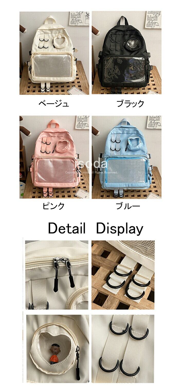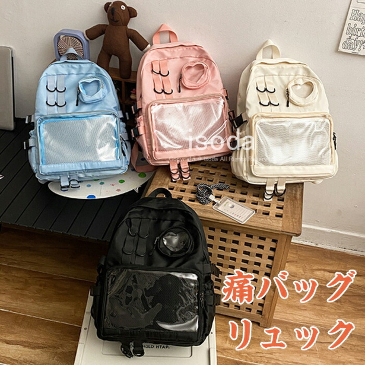 Item Information商品名 痛バッグ 痛バ リュック レディース バッグカラー ポリエステル説明 【多機能でオシャレなリュック】クリアポケットが特徴の多機能バックパックです。痛バッグとしても使用でき、お気に入りのキャラクターやグッズを入れて自分だけのデザインを楽しめます。シンプルながらもオシャレなデザインで、日常使いからイベントまで幅広く活躍します。