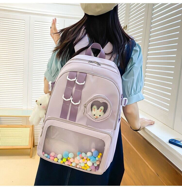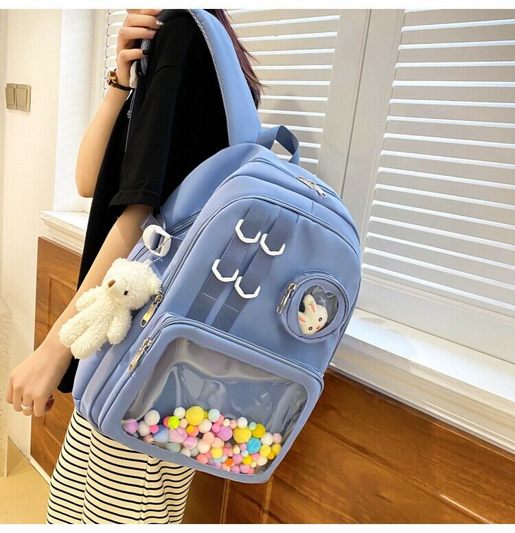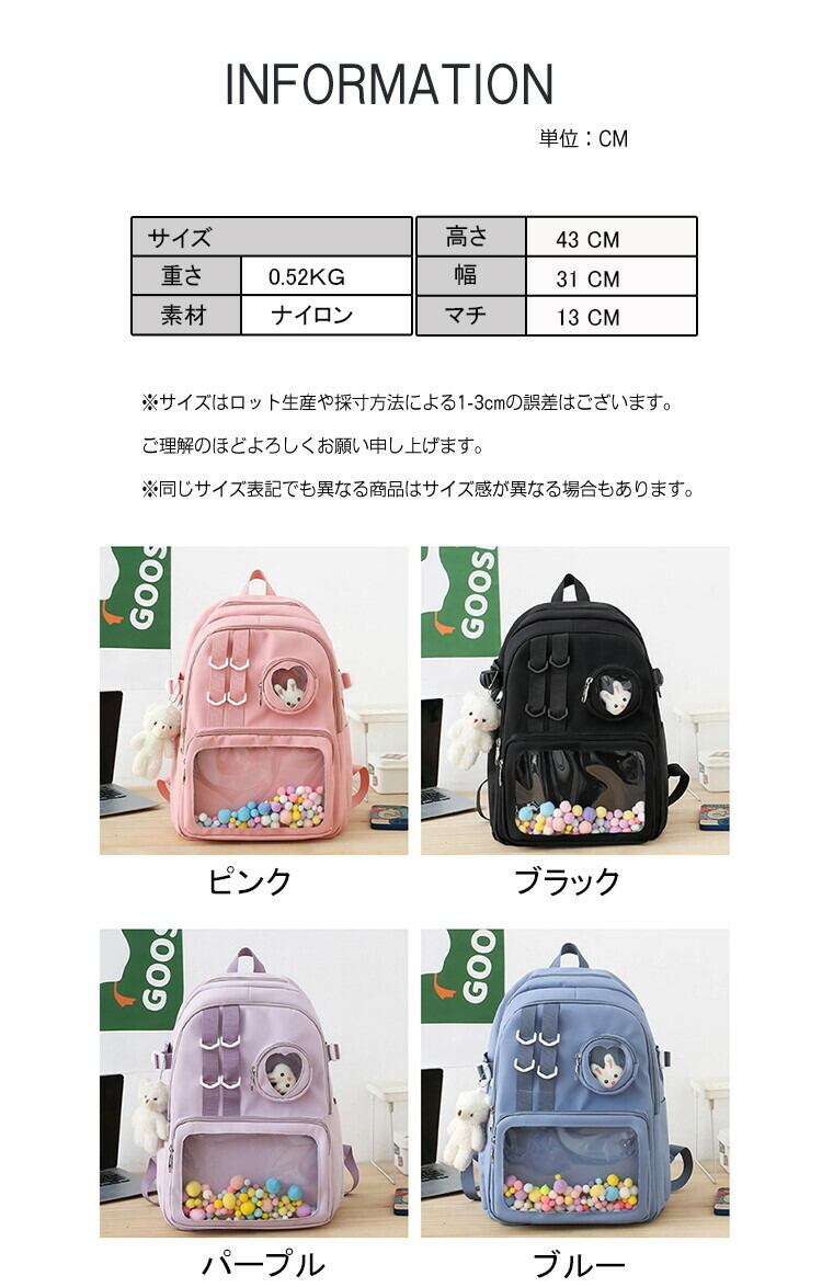 ◆ フロントに透明ポケットで見せたいアイテムを自由にアレンジできます。好きなアイドルやキャラクターの写真、缶バッジ、ストラップ、ぬいぐるみ、萌グッズなど入れて一目瞭然です。