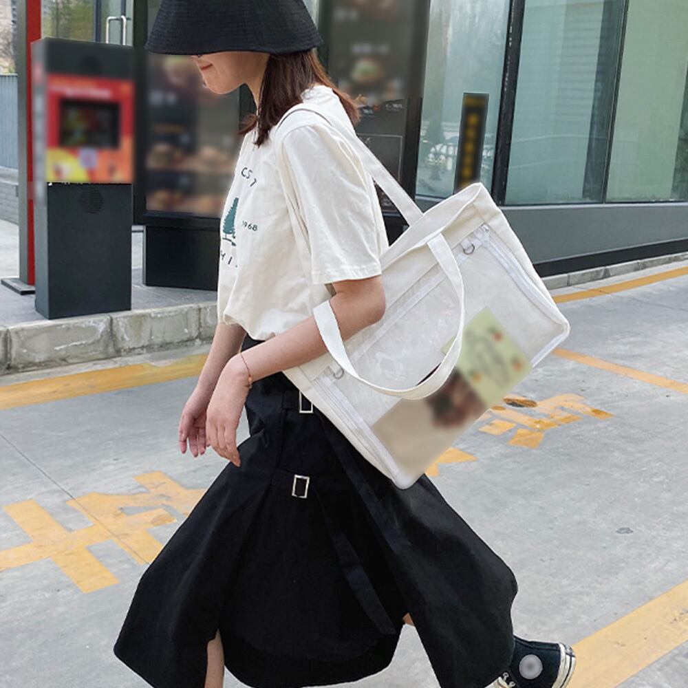 【日本倉庫即納】 キャンバスバッグ クリアポケット 大容量