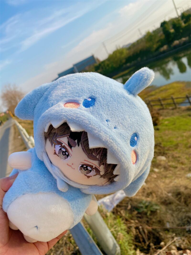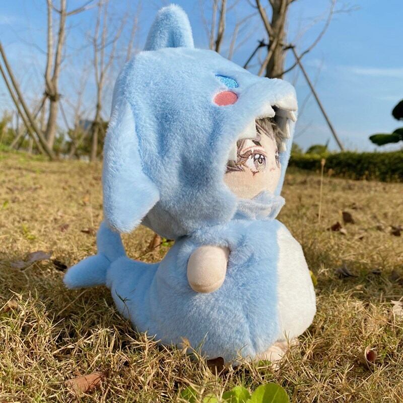 着せ替えぬいぐるみ ミニドール ぬいぐるみ用服 おもちゃ ふわふわボア連体服 サメ フード付ロンパース