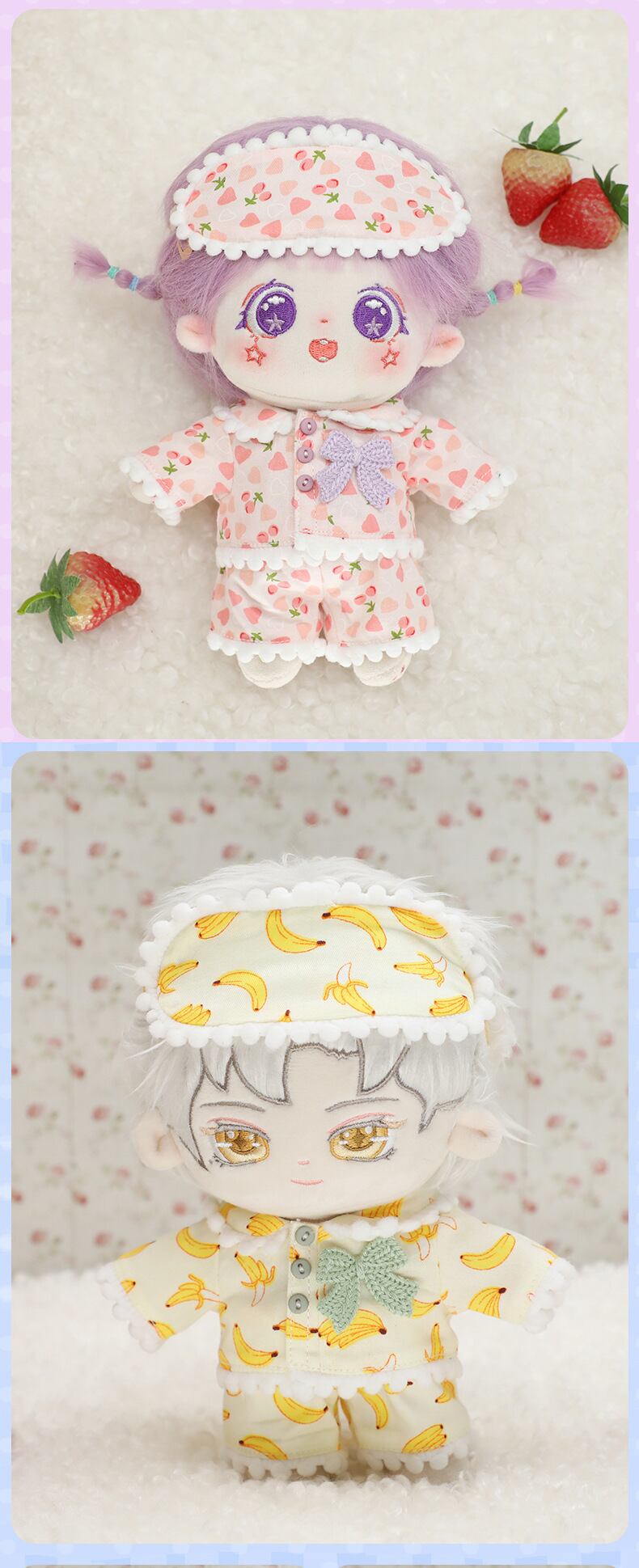 着せ替えぬいぐるみ ミニドール ぬいぐるみ用服 おもちゃ パジャマ ハート バナナ アイマスク 服3点セット