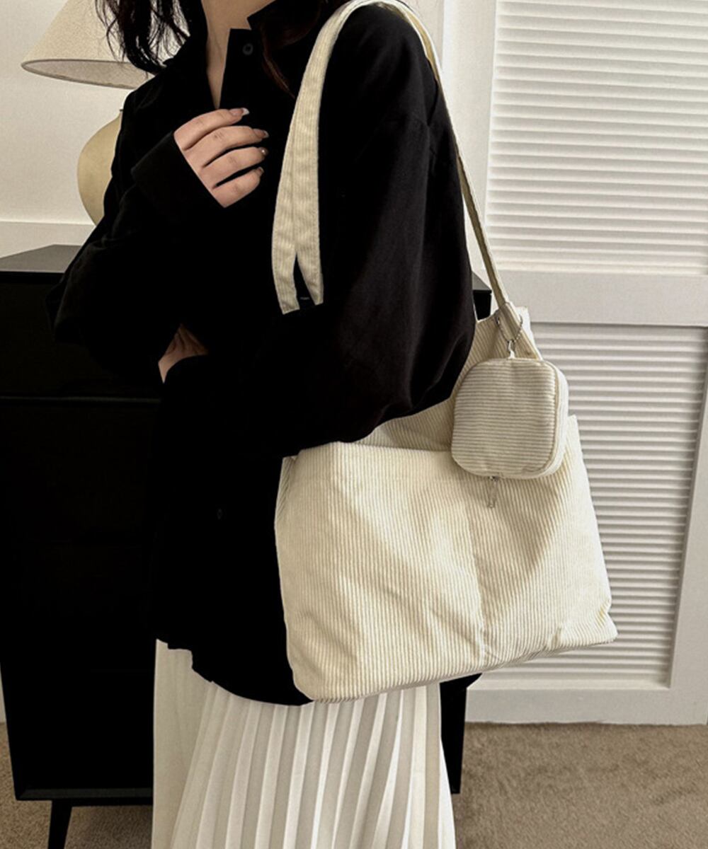 【日本倉庫即納】 ポーチ付きコーデュロイトートバッグ大容量