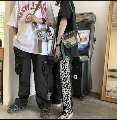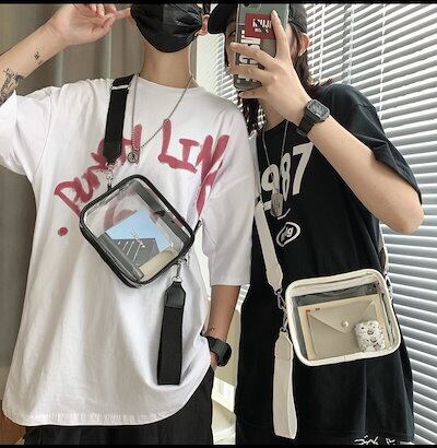 透明スクウェアバッグ男女用韓流ニューデザインカジュアルバッグ斜め掛けバッグ